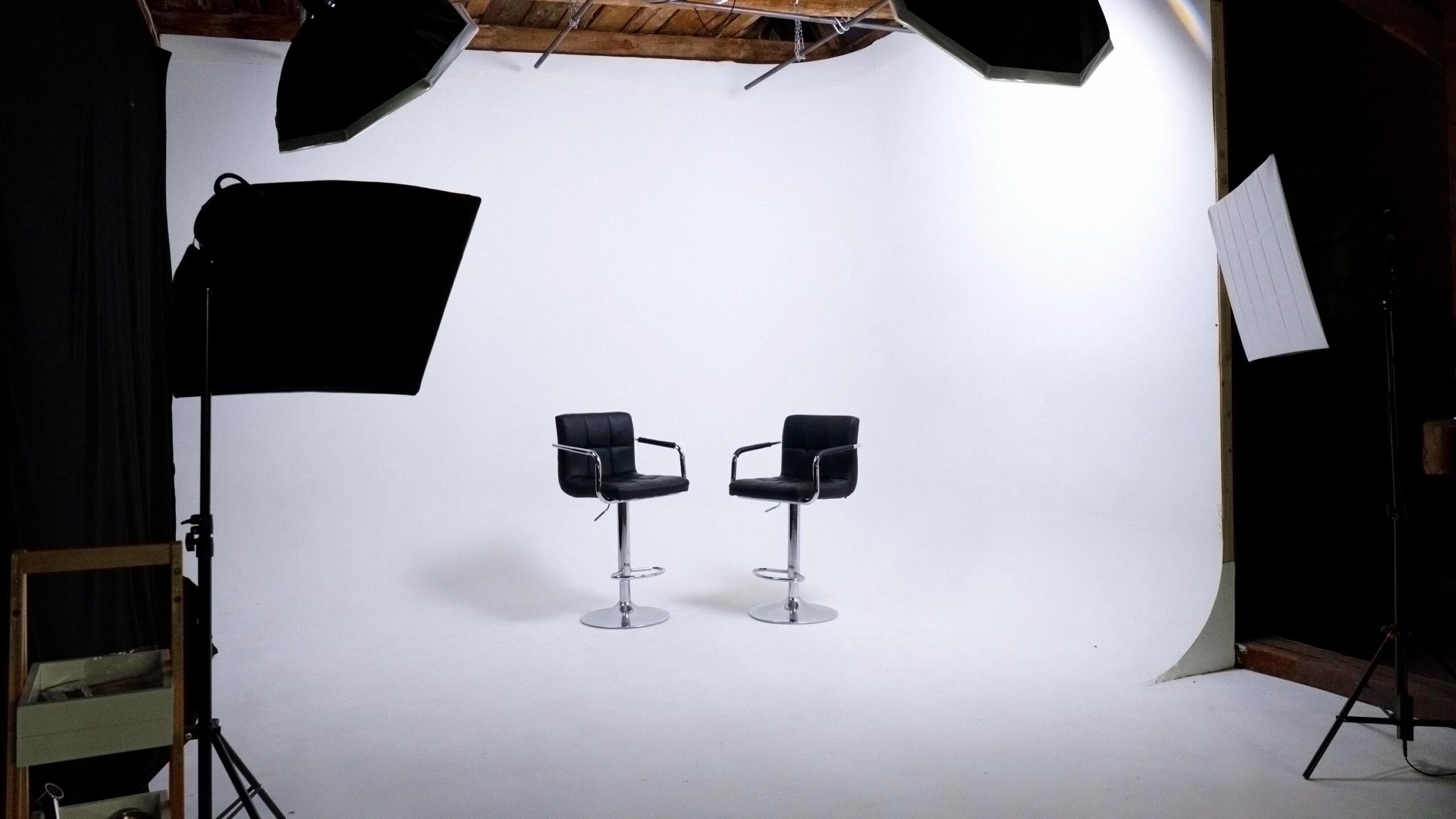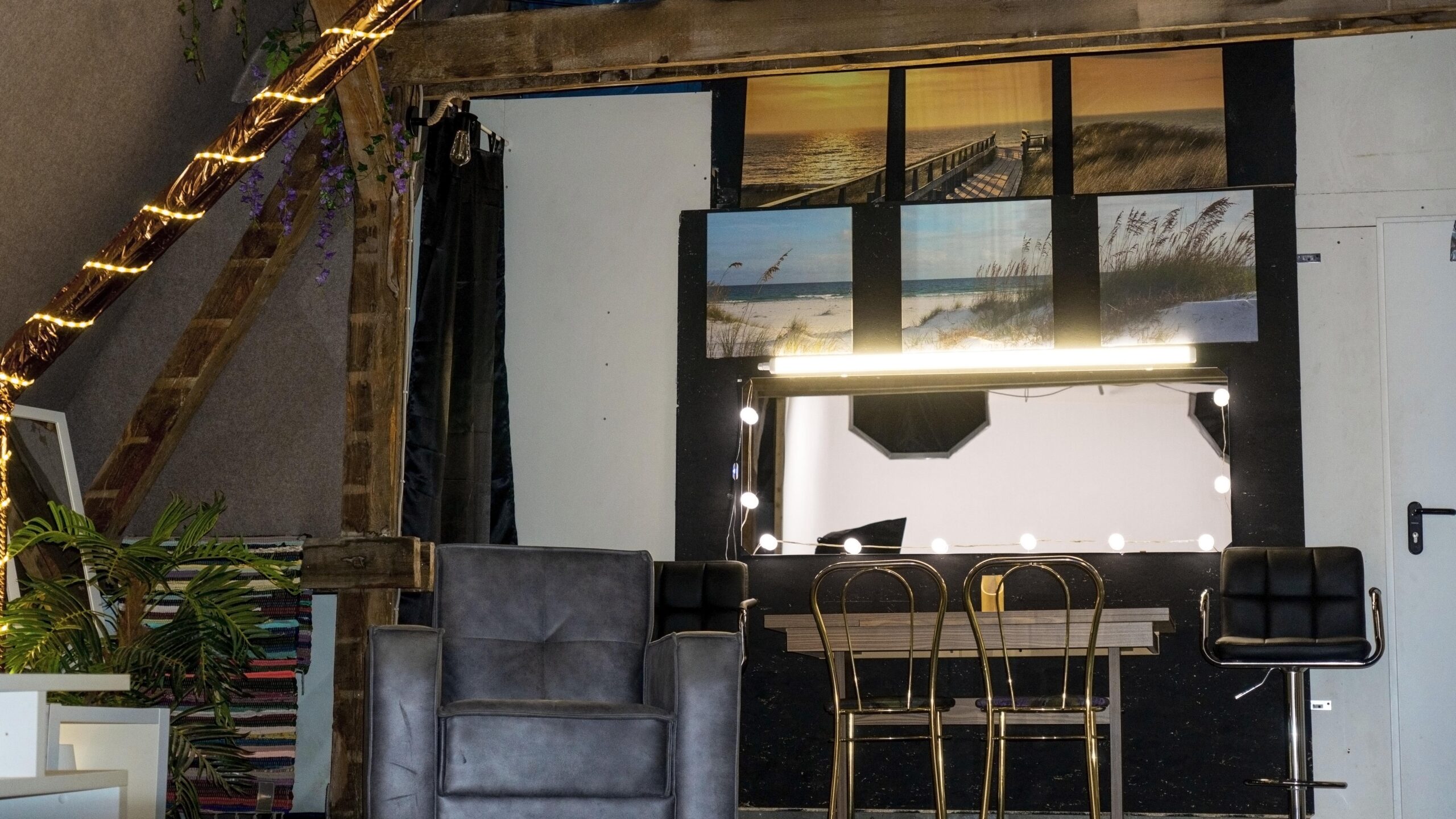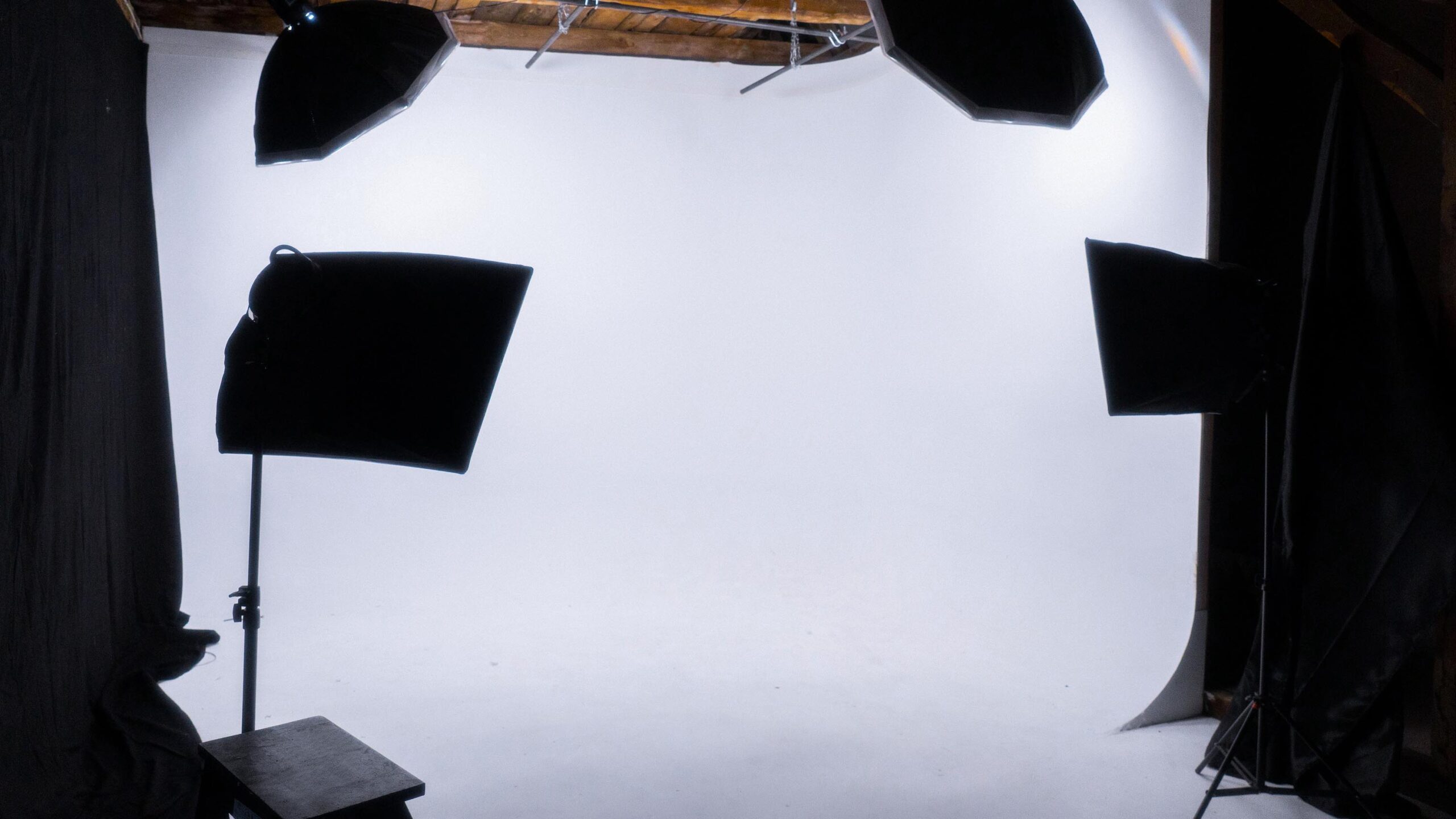 Photo Studio with a versatile L/U-shaped cyc wall, full lighting setup, and a dedicated makeup & styling area.